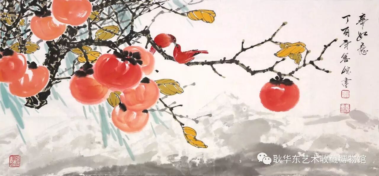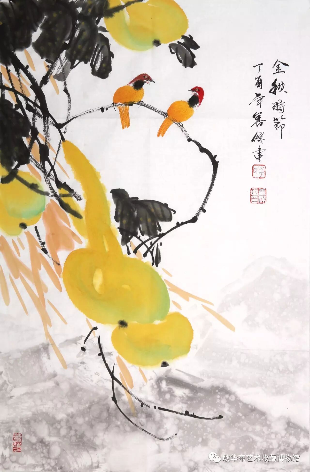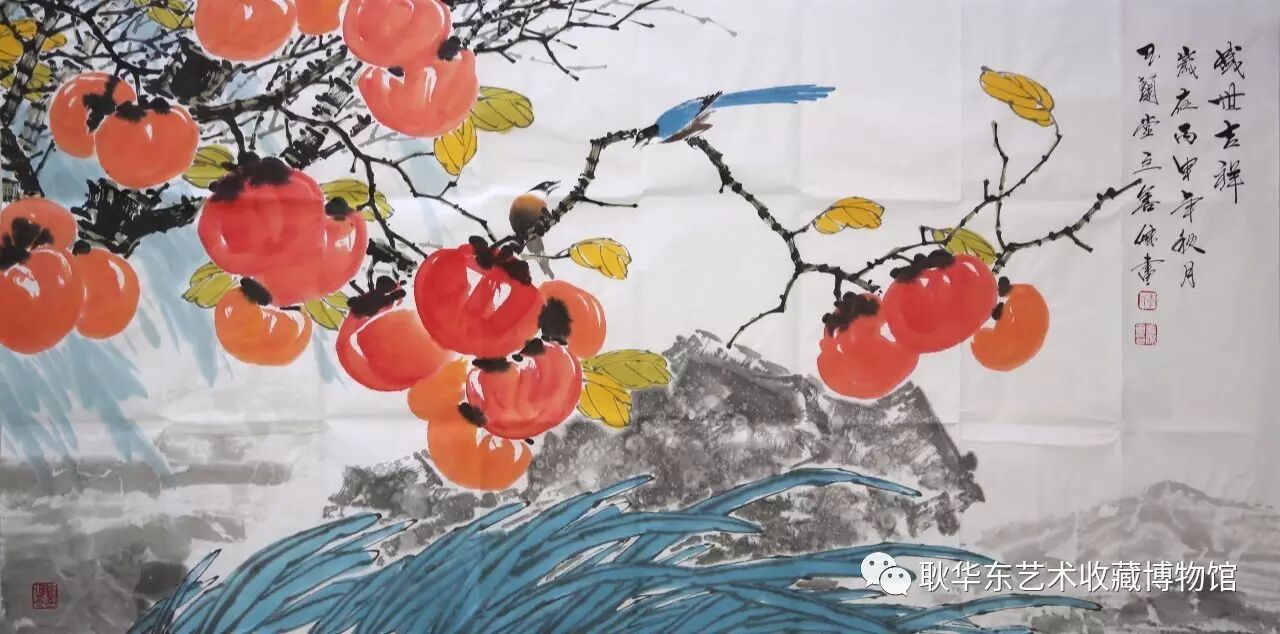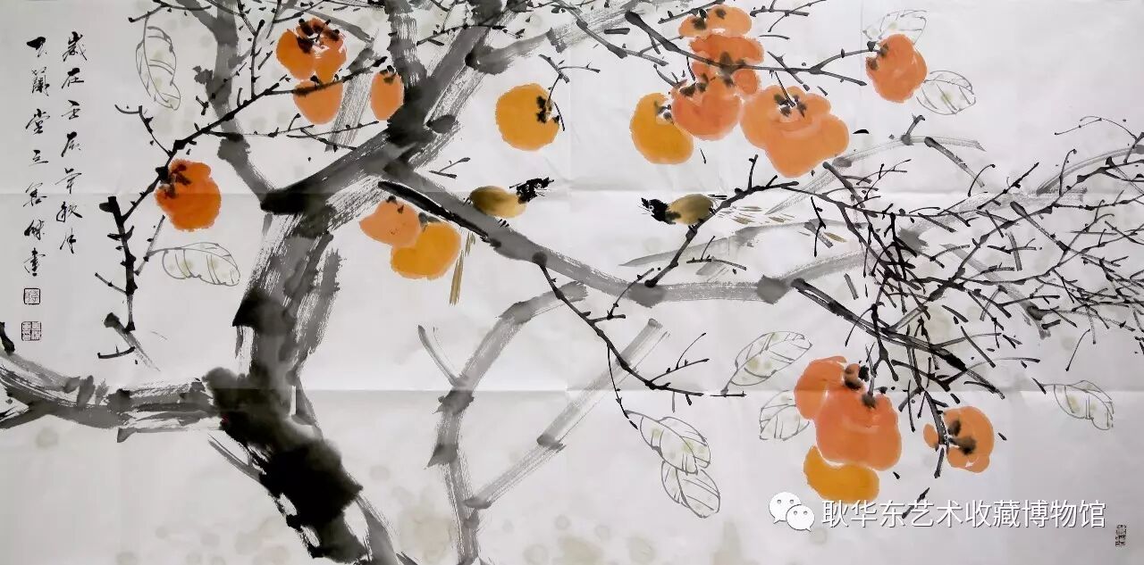 《红叶喜鹊》 规格:68cmx136cm 录入博物馆画册第一刊 出展于耿华东艺术收藏博物馆