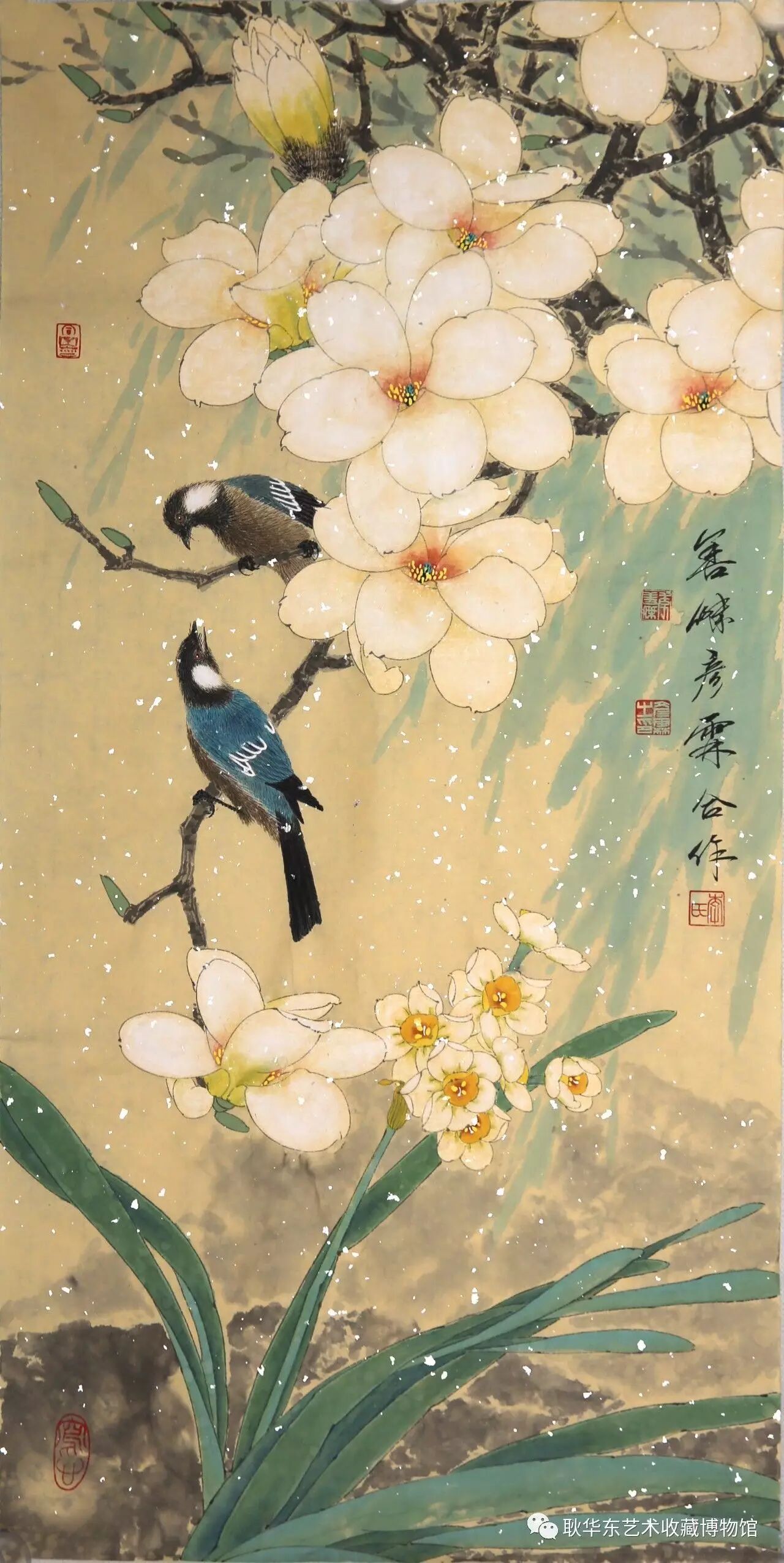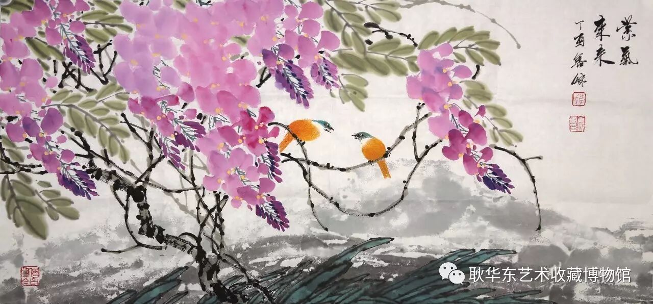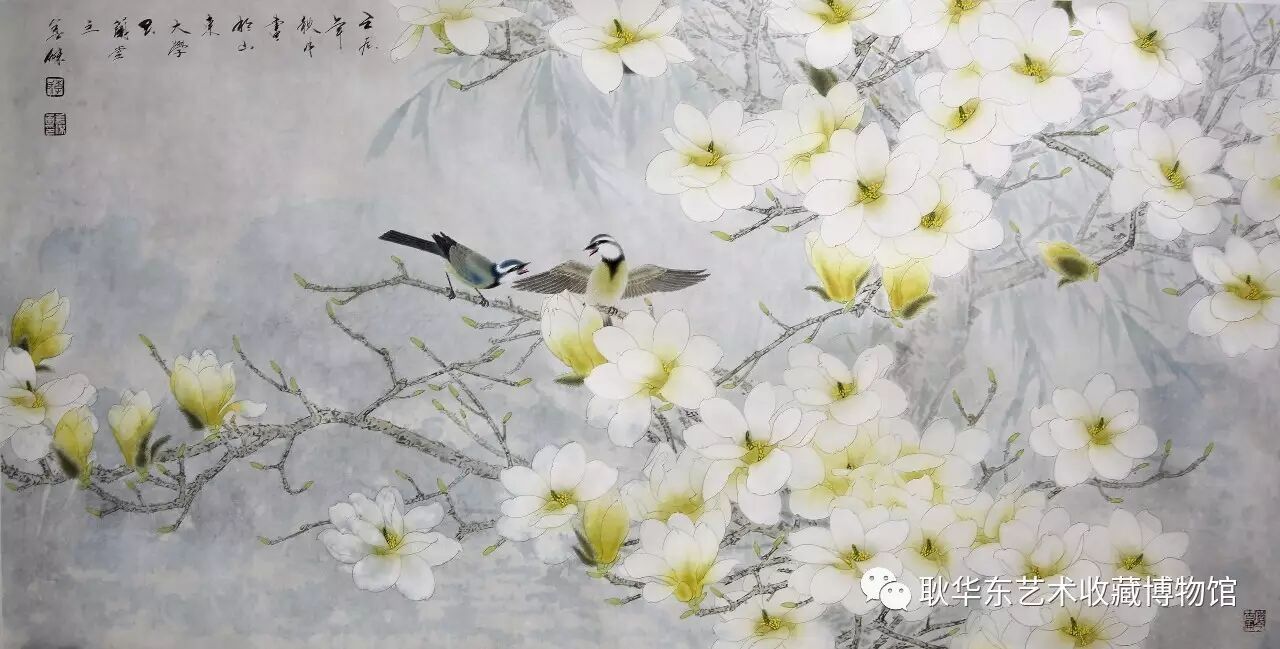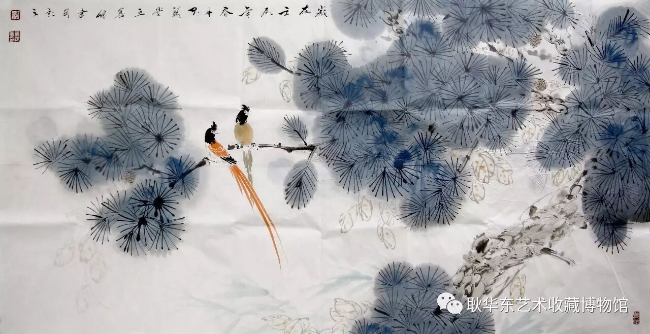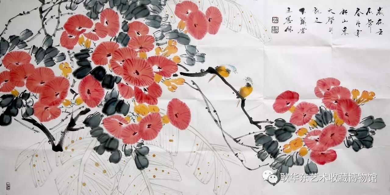 《花间嬉戏》 规格:68cmx136cm 收藏于耿华东艺术收藏博物馆