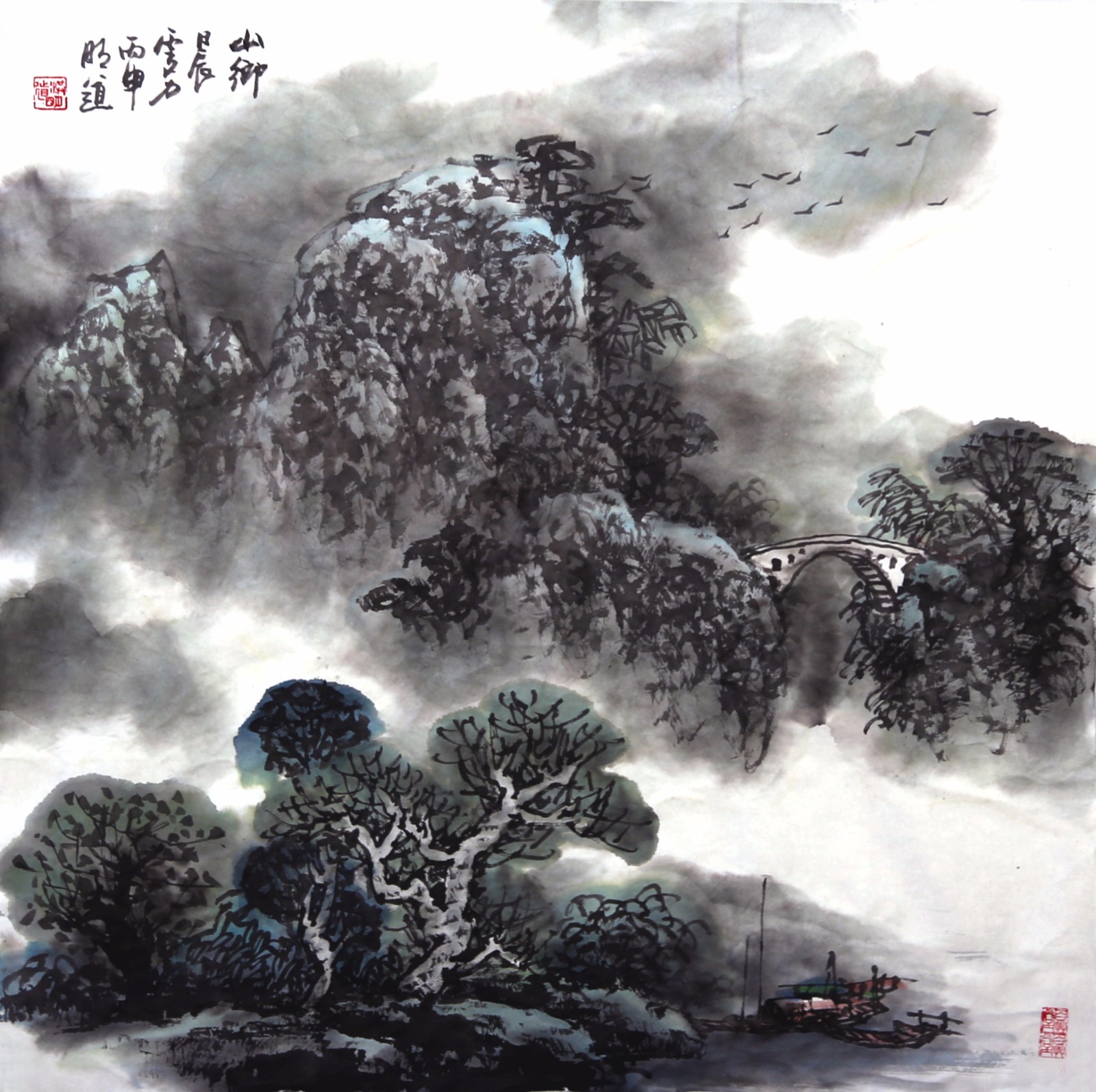 洪明道《山乡晨雾》 ; 尺寸: 68.0 x 68.0 cm ; 价格: /平尺