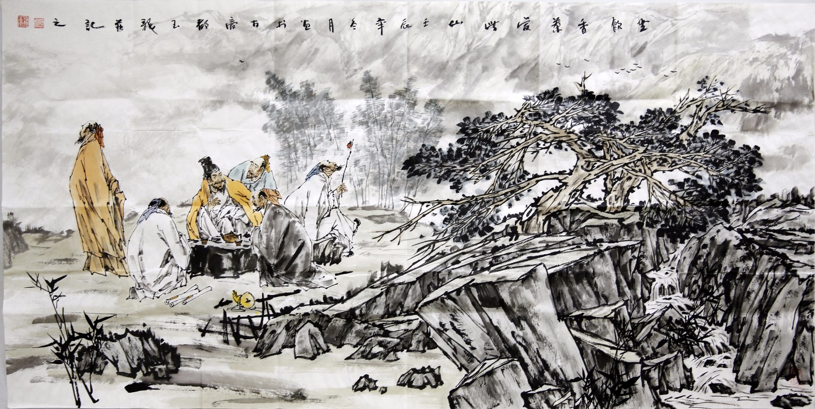 贺玉龙《坐饮香尊》 ; 尺寸: 68.0 x 136.0 cm ; 价格: /平尺