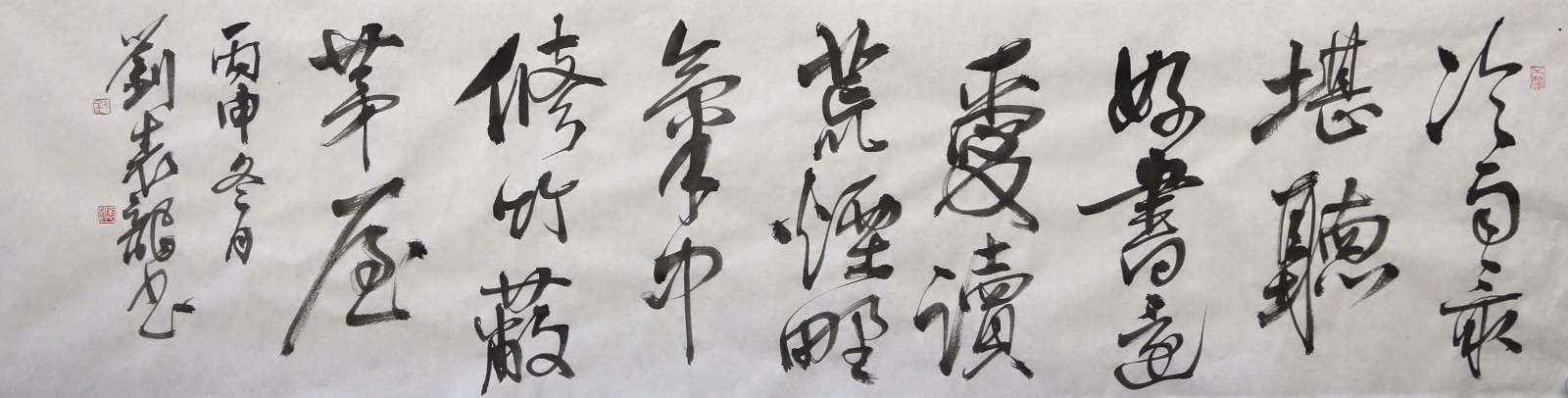 刘表龙《冷雨最堪听 好书还爱读 荒烟野气中 修竹蔽茅屋》 ; 尺寸: 34.0 x 136.0 cm ; 价格: /平尺
