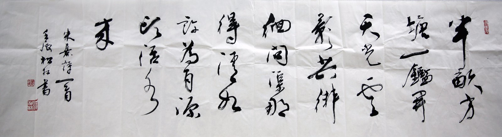 刘松林《南宋.朱熹-观书有感》156-42(半亩方塘一鉴开,天光云影共徘徊。问渠那得清如许,为有源头活水来。) ; 尺寸: 34.0 x 136.0 cm ; 价格: /平尺