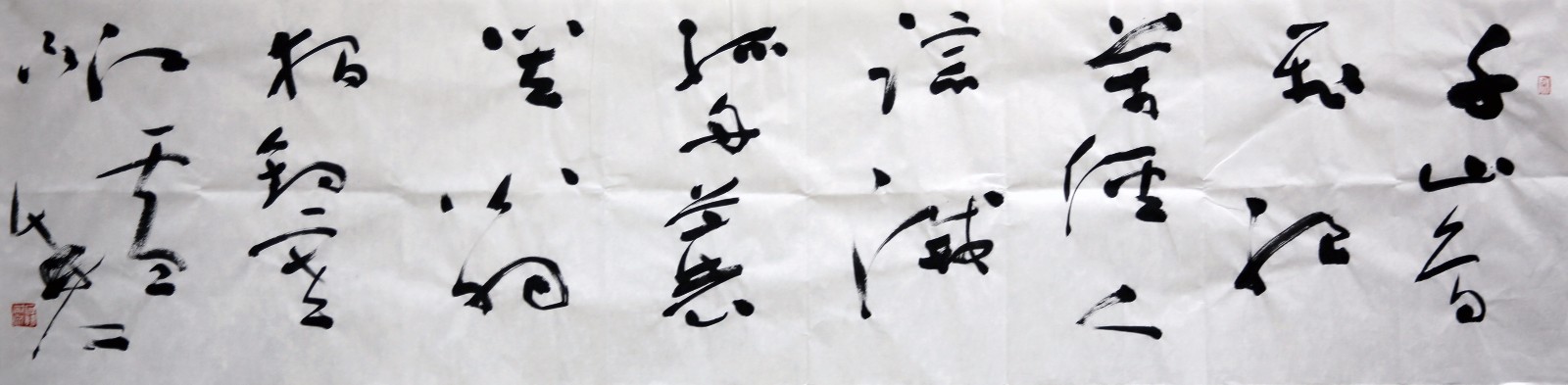 聂成文《唐.柳宗元-江雪》138-34(千山鸟飞绝,万径人踪灭。孤舟蓑笠翁,独钓寒江雪。) ; 尺寸: 34.0 x 136.0 cm ; 价格: /平尺