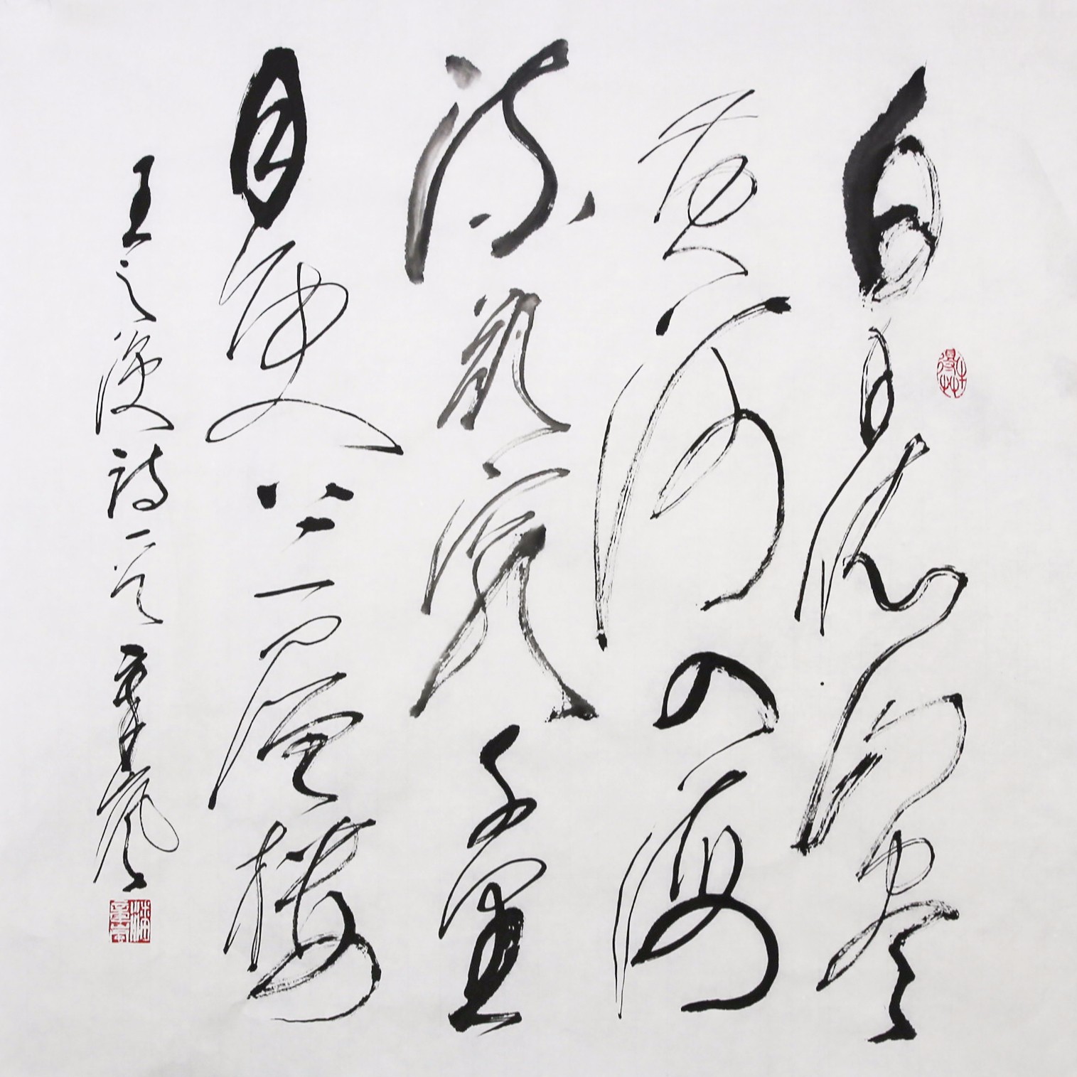 潘章岚《唐.王之涣-》68-68(白日依山尽,黄河入海流。欲穷千里目,更上一层楼。) ; 尺寸: 68.0 x 68.0 cm ; 价格: /平尺