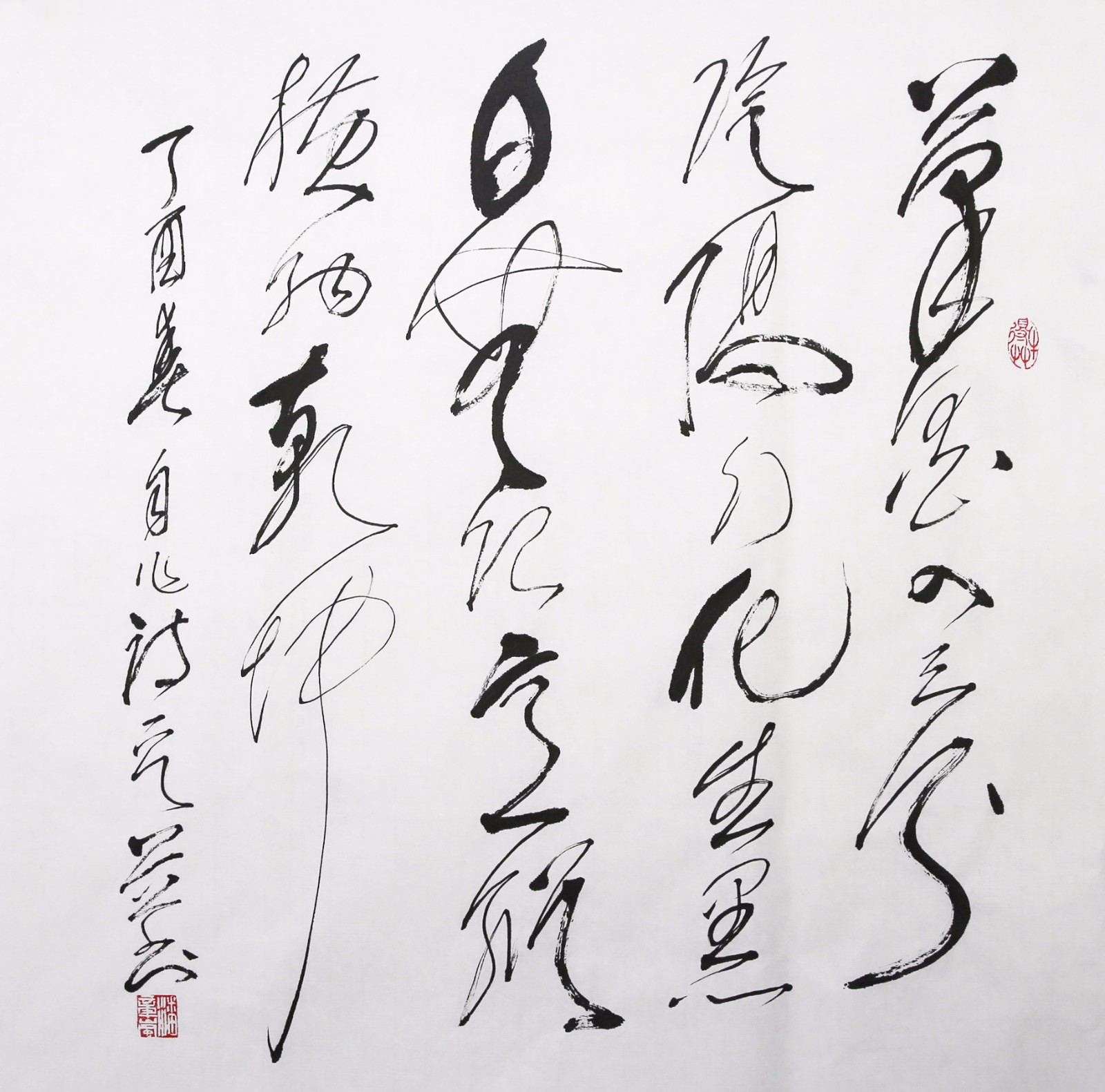 潘章岚《自作诗》68-68(笔墨入三分,阴阳幻化生。黑白无限意,纵横纳乾坤。) ; 尺寸: 68.0 x 68.0 cm ; 价格: /平尺